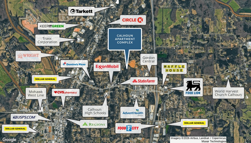 - Established residential location in Calhoun, GA, northeast of downtown and near major amenities.