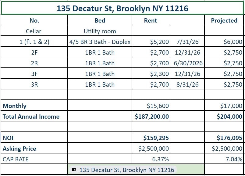 Turn-Key, Brownstone , +6.25 CAP! 135 Decatur St 5 Unit Apartment Building $3,398,025 CAD ($679,605 CAD/Unit) 6.37% Cap Rate Brooklyn, NY 11216