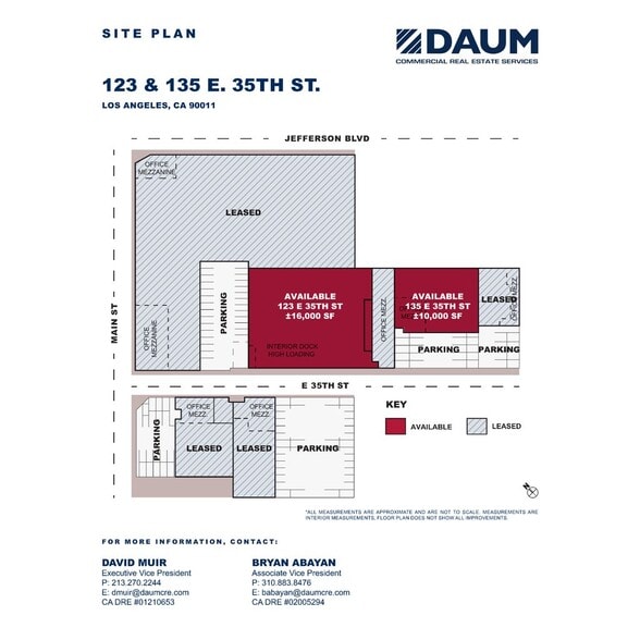 135 E 35th St, Los Angeles, CA 90011 • 10,000 SF freestanding warehouse • Lease rate: $15,000/month gross ($1.50/SF) • 24’ clear height • Sprinklered • Tilt-up construction • 1 ground-level loading door (13' x 20') • 18 car parking spaces • 3,200 SF office with 5 offices • 3 restrooms • Office HVAC • Fenced / paved yard • LA M1 zoning • Vacant now • 3–5 year term • Strong location with quick access to DTLA, USC, Vernon, Arts District, Garment District, and the 10 / 5 / 60 / 710 / 101 / 110 freeways