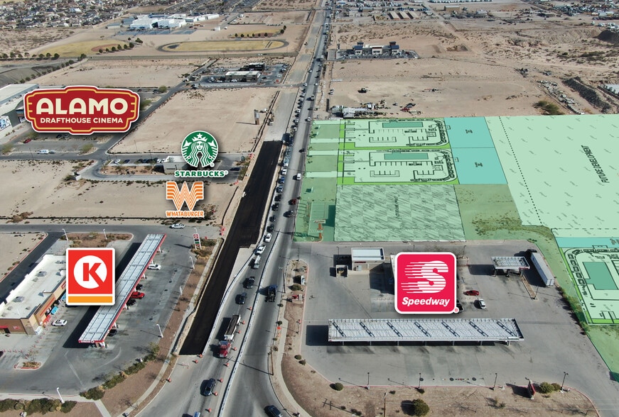 - Located on the SEC intersection of Joe Battle Blvd. (Loop 375) and Pellicano Dr. next to Speedway gas station and convenience store.