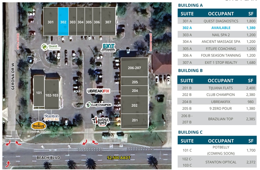 -SPACE AVAILABLE: 1,380 SF -Direct frontage on Beach Blvd with traffic counts of 52,500 AADT -Strong daytime population of 116,582 within a five-mile radius