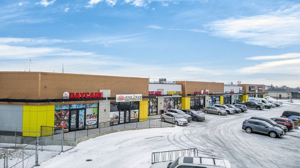The centre features a strong mix of national and regional tenants including Varsity Burgers, Supplement King, and Wok Box, with major nearby draws such as Costco, Real Canadian Superstore, Shoppers Drug Mart, and Tim Hortons driving consistent daily traffic exceeding 50,000 vehicles per day. Zoned General Commercial, the space accommodates a wide range of retail, food and beverage, and service-oriented uses — an excellent opportunity for businesses seeking a high-visibility location in one of Edmonton’s busiest northeast corridors.