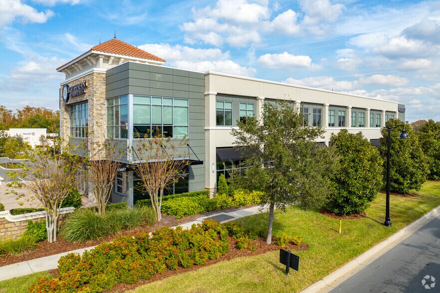 Two story mixed use building located on the lighted intersection of Eagle Creek Center Blvd. and Narcoossee Rd.