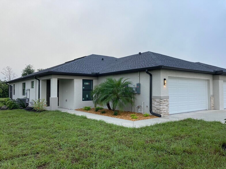 Each rental unit (8 total) has 1452 livable SF, 3-bedrooms, 2-baths, and a 2-car garage. Property insurance is only $1225/year due to the high elevation above flood zones (zone-X). Finished with stone & stucco exteriors, raised tray ceilings, stone countertops, and ceiling fans in every room. Attached Villa-home in the Deep Creek neighborhood with an affordable POA of $13.75/ month. The large windows make the living area very comfortable and light in person.