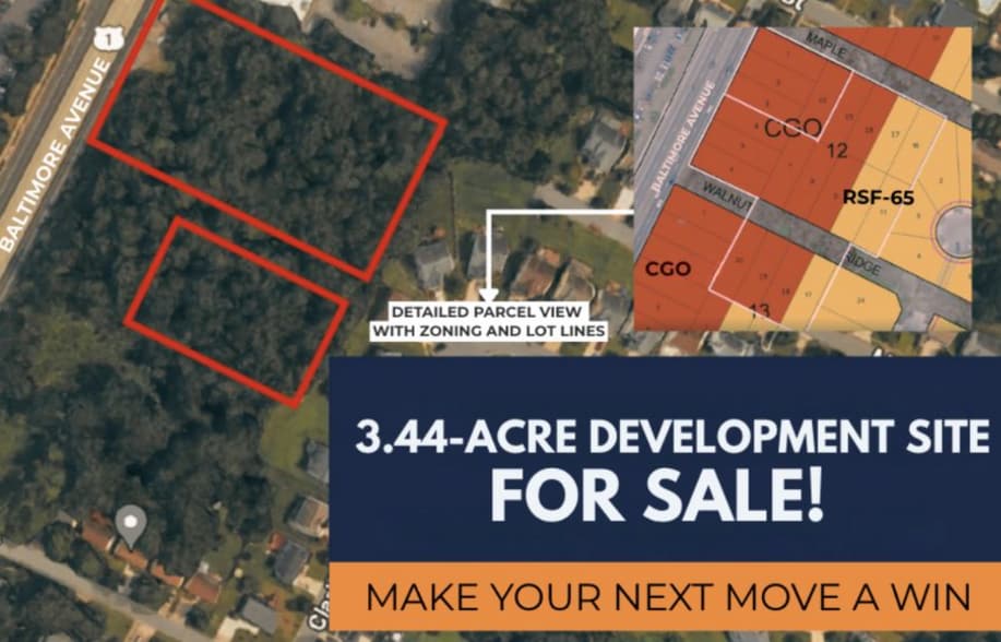 Lot Description Lot Size: 3.44 Acres Zoning: Dual Zoning – CGO (Commercial General Office) & RSF-65 (Residential Single Family) Situated along Baltimore Avenue/Route 1, providing: Strong visibility Daily traffic exposure (92,140 AADT)