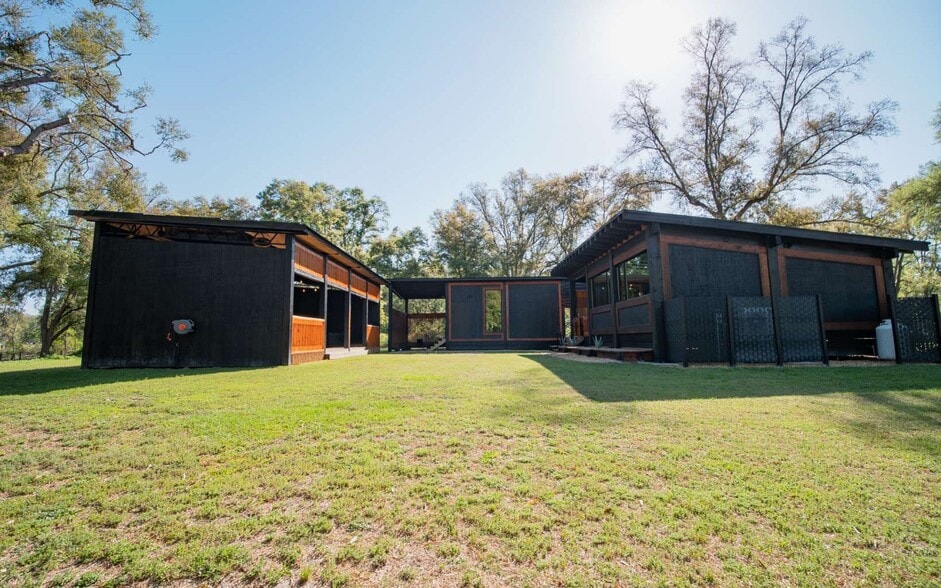 This isn't just a property--it's a statement. Tucked away in the quiet countryside of North Florida, this one-of-a-kind luxury minimalist compound blends modern self-sufficiency with serious entertainment capability. The main residence features 2 bedrooms, 1 bathroom with clean, intentional design. Just steps away, a fully independent 1 bed / 1 bath mother-in-law suite offers complete privacy and self-sustaining functionality--perfect for guests, rental income, or multi-generational living. The property also includes a 2018 North Trail Travel Trailer 28' & shelter, EG4 18kW inverter system EG4 battery rack (30 amp), 33 Aptos 460W solar panels, Kohler 7kW generator backup, Tankless water heaters, Stainless steel prep and cooking stations, flat top grills, commercial fryers, and pizza oven, built-in commercial ice machine, full stainless sink and workspace & stocked fish pond. See the attached documents for other equipment and features.