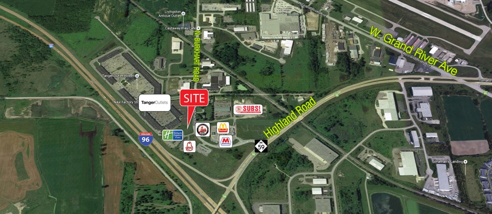 PROPERTY DESCRIPTION: Outlot to Holiday Inn Express, next to Tanger Outlet Mall. Designed for a 4,300 SF restaurant, with many other allowable uses. LOCATION DESCRIPTION: Located on the west side of Burkhart, just north of Exit 133 and I-96. Land contract terms available. At Burkhart Rd & I-96.