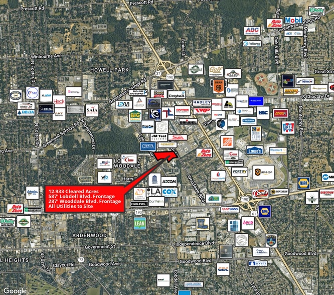12.93 Acres – CW3 – Dual Access, Cleared & Build-Ready • Dual Access – Property Spans from Lobdell Blvd. to Wooddale Blvd. • Cleared & Unencumbered Tract with Maximum Usable Land • Zoned CW3 – Commercial Warehousing Three • All Utilities On Site • No Wetlands – No Flood Zone • 587' Frontage on Lobdell Blvd. • 287' Frontage on Wooddale Blvd. • Highly Visible Location in Central Baton Rouge Corridor • $5.68 per Square Foot *Owner/Agent