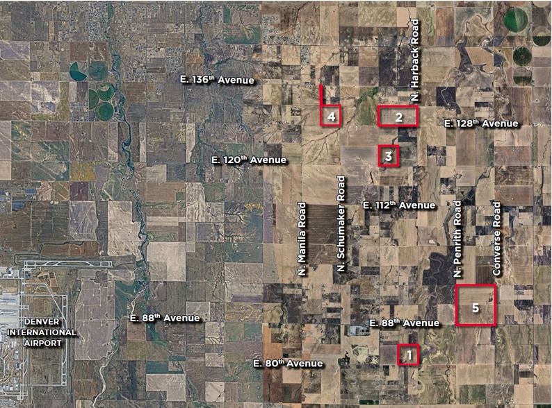 Surrounding amenities include quick access to I-70, DIA, and the Gaylord Rockies Resort, as well as proximity to Brighton and Aurora. As part of the Colorado Aerotropolis vision, this area is set to become a hub for innovation, logistics, and advanced industries. Offered at agricultural pricing, this portfolio represents a rare chance to secure a significant footprint in one of Colorado’s most dynamic growth corridors.