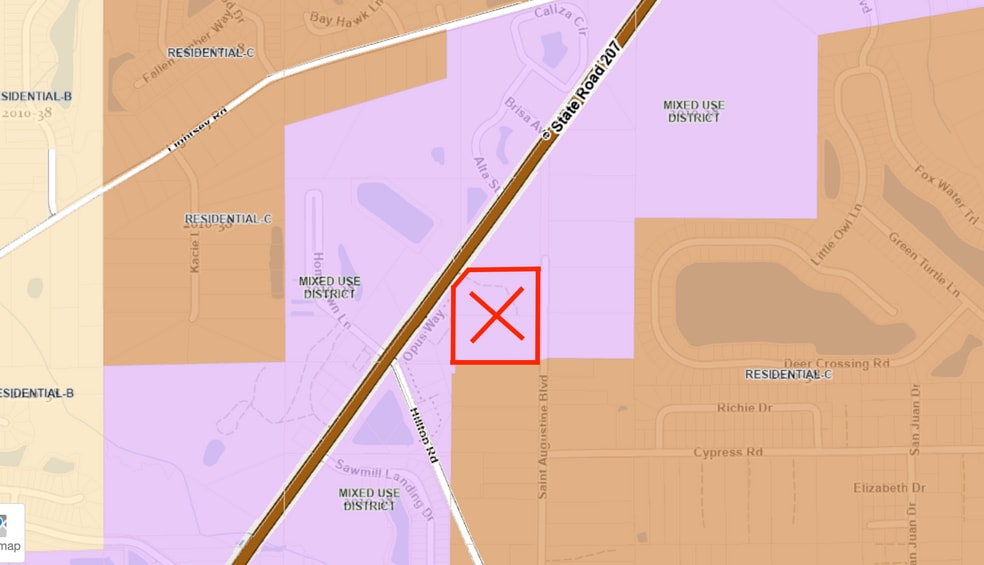 9.1 acres in a prime location on State Road 207 in St Augustine. This parcel features 161 feet of frontage on SR 207 with an extremely high annual average daily traffic count of 35,000. Currently zoned Open Rural, but is designated mixed use on the St. Johns County FLUM (Future Land Use Map). This parcel is surrounded by a variety of high-intensity zonings. The land adjacent to the north and east are zoned IW (Industrial Warehouse). The land adjacent to the west and the land directly across SR 207 is zoned CI (Commercial Intensive). The location is superb as it is both close to town and also I-95. This is the first time the property has been available in many decades as its been in the same family since the late 1970's. Huge potential as multi-family, industrial warehouse or a wide variety of other commercial uses.