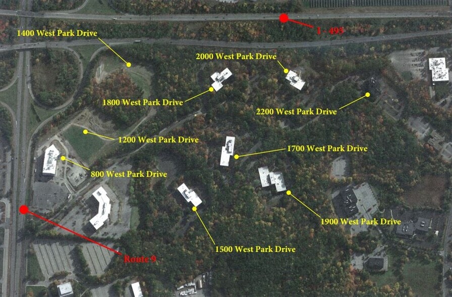 Westborough Office Park is a masterfully-planned, 153-acre site that will eventually contain more than 1.7 million square feet of first-class office space. It can be linked with lots 1200, 1300, 1400, 2300 West Park Drive for a total of 1,100,000 sf in one building. These buildings will be LEED and Energy Star Certified. Tucked into a wooded hillside, the Westborough Office Park is located with convenient access to all the major roadways in Eastern Massachusetts. Located in the southwest quadrant of the Route 9/I-495 interchange. Thirty (30) miles west of Boston, fifteen (15) miles west of Route 128, ten (10) miles east of Worcester, and one (1) mile north of the Massachusetts Turnpike/I-495 interchange.