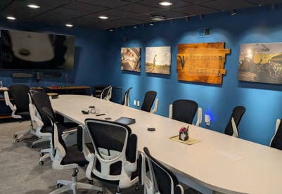 Positioned in the heart of Bloomington’s commercial corridor, 1401 Commerce Parkway offers a rare blend of upscale office space and functional warehouse capacity in a single, fully integrated facility. This 10,000 square foot tech-enabled property is ideal for companies seeking a dynamic environment that supports collaboration, innovation, and operational efficiency. The 5,000 square foot office component is fully furnished with Herman Miller ergonomic workstations, height-adjustable desks, and modern sit/stand configurations. It features turnkey AV and multimedia systems including TCL and Samsung displays, Logitech video conferencing, and integrated LED lighting and sound controls. Multiple dedicated meeting zones—such as the Vision and Pogo rooms—are equipped with professional-grade presentation infrastructure and RGB lighting for events. A mezzanine level accessible by elevator adds a vibrant café-style break area with espresso machines, Nitro Coffee Cooler, full kitchen, and recreational amenities like foosball, table tennis, and bean bag lounges—perfect for fostering team energy and informal collaboration. The 5,000 square foot warehouse is clean and efficient, featuring two dock doors, racking systems, and LED lighting. Tesla and universal EV chargers are available on-site, supporting sustainability and modern workforce needs. This property is offered on a modified gross lease basis, with tenants responsible only for utilities. Lease terms are negotiable, making this a flexible and compelling option for tech firms, creative agencies, or hybrid operations seeking a distinctive space in Central Illinois.