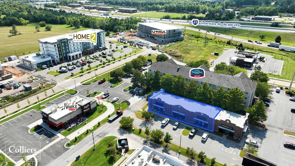 Retail office space for lease at Campus Plaza in Bentonville, Arkansas. Across from Northwest Arkansas Community College with more than 7,715 students enrolled. Property neighbors the Bentonville Commons development with new retailers Slim Chickens, Diamond Car Wash, Jiffy Lube and Home2Suites by Hilton. Water Tower Road will be extended to the new 8th Street exit to re-channel traffic into the 350-acre Walmart Home Office campus and Razorback Greenway trail system.