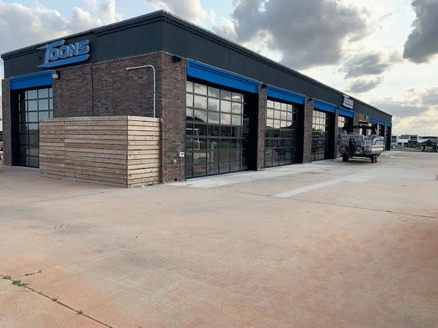 - Eight overhead doors provide flexibility for retail, service, or showroom use.