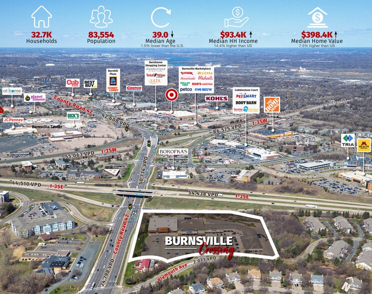 Burnsville Crossing (the “Property”) is a multi-tenant retail center anchored by Furniture Mart and located on County Road 42 near the convergence of interstates I-35E & I-35W within the established Burnsville regional retail trade are.