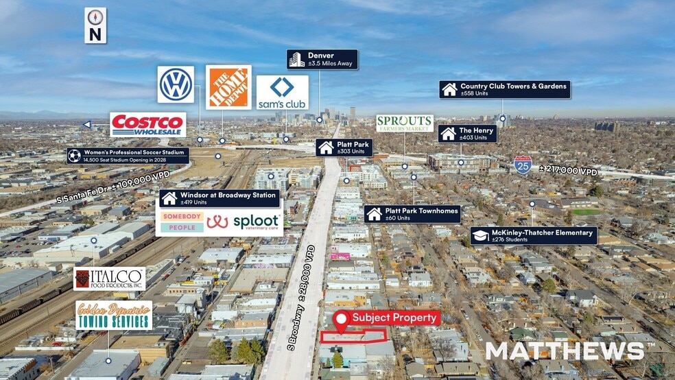 - Superb Central Location On South Broadway providing direct exposure along one of Denver’s most heavily trafficked retail corridors.