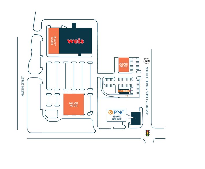 - Signalized ingress/egress off of North Atherton Street & Weis Shopping Center