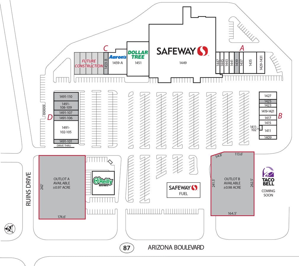 | 1st Floor, Ste 1491-106 | 1,600 SF | Negotiable | Upon Request Upon Request Upon Request Upon Request | TBD | ||