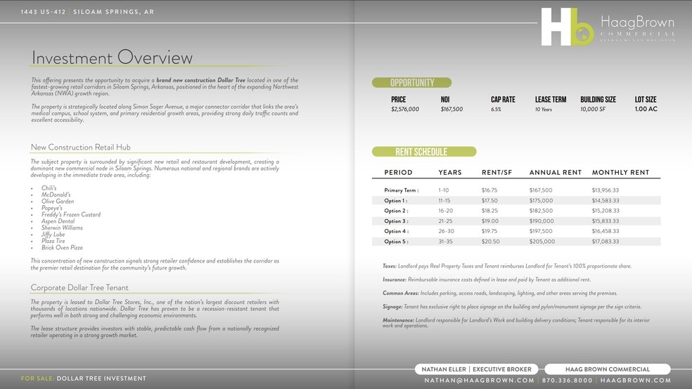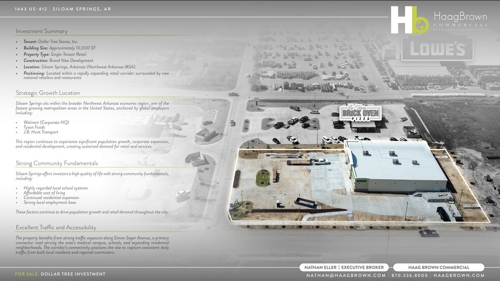 Brand New Dollar Tree Investment 1443 US-412 10,000 SF Retail Building Siloam Springs, AR 72761 $3,592,232 CAD ($359.22 CAD/SF) 6.50% Cap Rate
