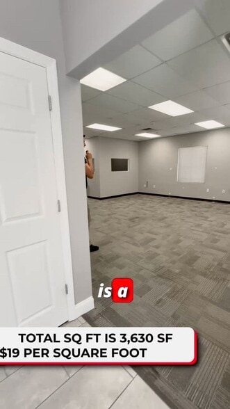 • 1,085 SF of office space under air and 1,020 SF of warehouse space. • 4 offices, 1 conference room, lobby, kitchenette and in-unit bathroom. • One 8' x 10' overhead door • Rent: $19.00 Base Rent Plus $5.13 CAM = +/- $4,232 Per Month • Three-year minimum term (no short-term occupancy)