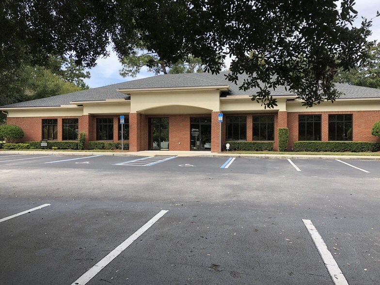 Beautiful brick building surrounded by mature trees and foliage. The building has three professional office spaces. The one for lease is the middle one. The other two are occupied by a Cosmetic Dental office and a Chiropractor office. A wooden fence is behind the building for privacy. Direct access from Mandarin Rd and San Jose Blvd. Parking in front and side. Not an office park. Signage also available on Mandarin Rd and San Jose Blvd.
