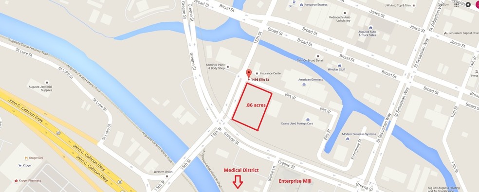 1496 Ellis Street is a .86 acre corner lot with frontage on Greene Street, Ellis Street and 15th Street. This property is zoned LI. Site ready with all utilities available. This site is conveniently located between the central business district and Augusta's medical complex, which houses Augusta University, University Hospital, VA Hospital and Children’s Hospital of Georgia. 1496 Ellis Street is easily accessible via the Calhoun Expressway, Riverwatch Parkway, and Fifteenth Street.