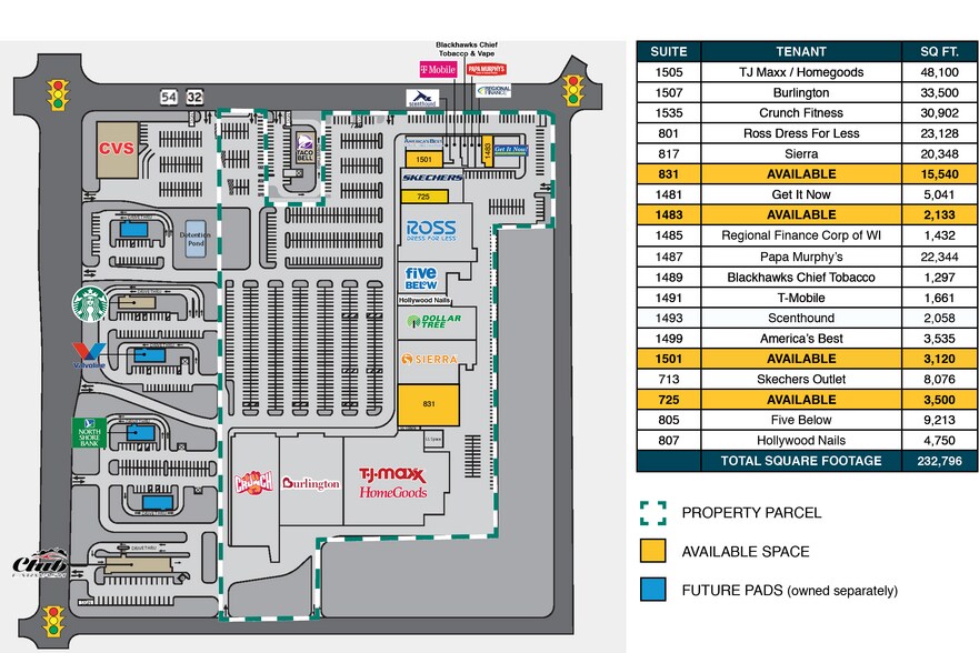 - National retailers include: TJ-Maxx, Sierra, Ross Dress For Less, HomeGoods, Burlington, Crunch, Dollar Tree and Five Below.