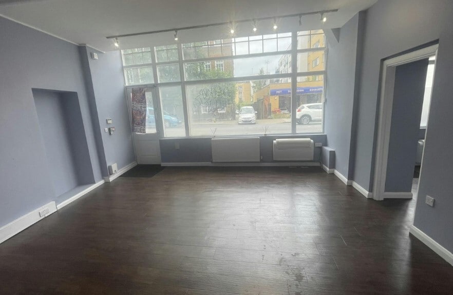 The accommodation comprises a double retail unit arranged over ground and basement levels, extending to approximately 873 sq ft NIA. The unit benefits from two separate entrances with an internal connection, a clear ground floor height of 3.03m and 2.34m in the basement, and has been fitted out to a good standard including wooden laminate flooring, spot lighting, air-conditioning, 3-phase power, gas central heating, and ancillary kitchenette, shower and WC facilities within the basement.