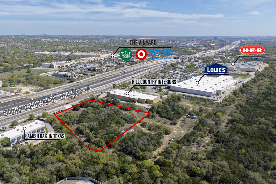 ±3.00-acre commercial tract located on Loop 1604 in Northwest San Antonio, directly across from The Vineyard Shopping Center and next to The Village at Blanco. This high-visibility site is positioned in a rapidly growing corridor with strong traffic counts and dense surrounding residential development.