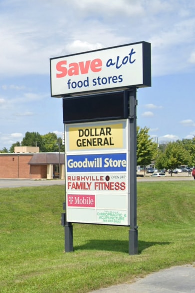 Save-A-Lot, Dollar General, and Goodwill anchored plaza in the heart of Rushville on busy N. Main St