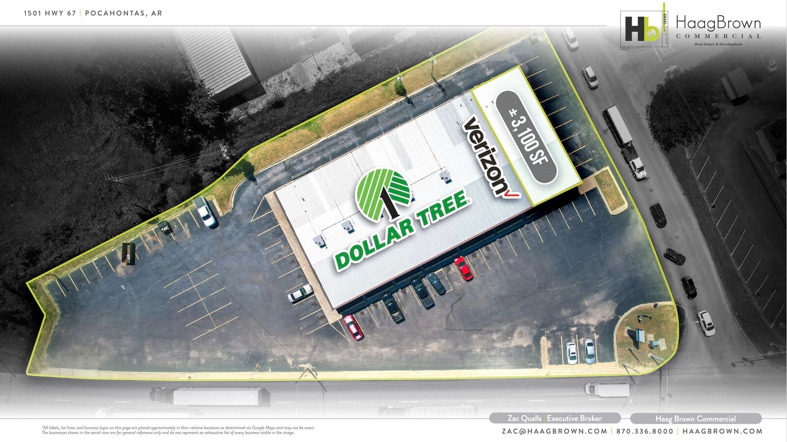 Seize a prime leasing opportunity at this Dollar Tree-anchored retail center, strategically located at 1501 Highway 67, Pocahontas, Arkansas, near a bustling Walmart Supercenter! This 13,600 SF retail center, situated at the signalized intersection of Highway 67 & Old County Rd, offers outstanding visibility & access, making it an ideal spot for businesses aiming to capture high foot traffic & exposure. The existing tenant mix includes trusted brands like Dollar Tree & Verizon, adding to the center’s strong appeal. The property features a rare +/- 3,100 SF end-cap lease space -- the only vacancy in the center -- & is surrounded by prominent national retailers & restaurants such as Walmart Supercenter, McDonald's, Taco Bell, Burger King, & O'Reilly Auto Parts. Ownership is flexible & willing to demise the space into two (2) separate suites, depending on economics & deal terms, offering versatility for potential tenants. Don’t miss your chance to secure this RARE high-visibility end-cap space in Pocahontas’ most dynamic retail trade area!