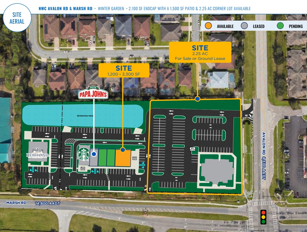 - 1,200 - 3,300 SF endcap with patio available