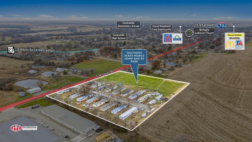 Sands Investment Group is pleased to exclusively offer for sale the 4.15-acre Southside Acres Mobile Home and RV Park, located at 1505 S Saint Louis Street in Concordia, Missouri. The property features 18 income-producing lots comprised of tenant-owned homes, park-owned homes, and RV sites, creating a diversified and durable revenue base supported by long-term residential occupancy. Operational efficiencies are enhanced by city water and sewer, with all utilities separately metered and direct-billed to tenants, while an on-site coin-operated laundry provides supplemental income. Additionally, the park is approved for up to 20 additional lots, offering a clear path for expansion and long-term value creation.