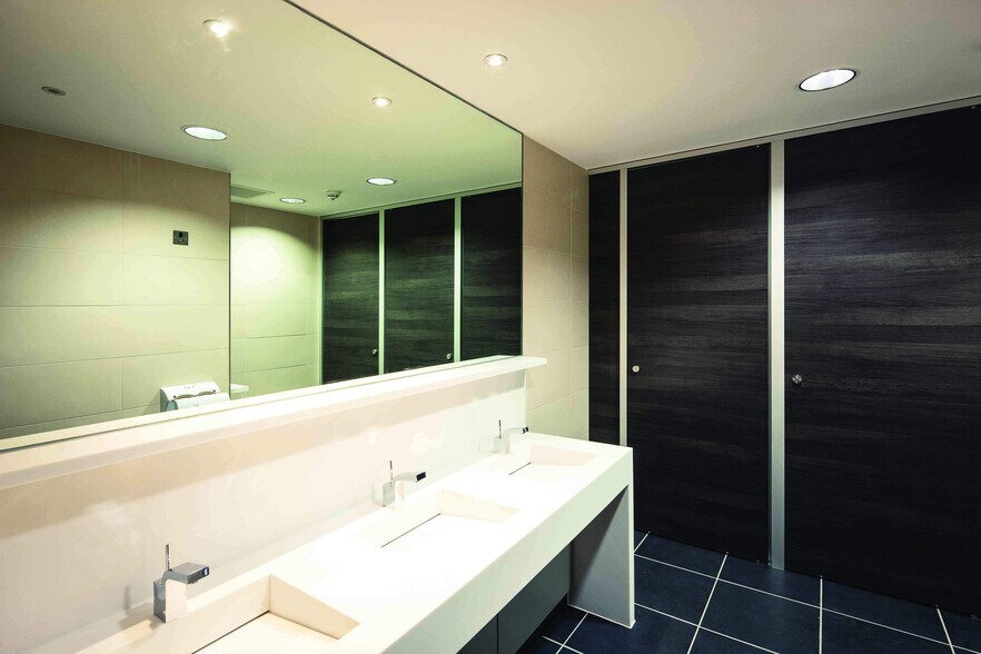 The space provides the following specification VRF Air Conditioning, Suspended Ceiling, LED Lighting, Raised Access Flooring, Dedicated male, female and accessible toilets, Curtain Wall Glazing, Basement shower and cycle facilities