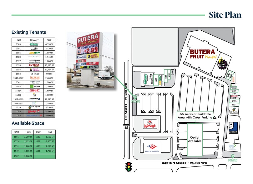 Oaks Shopping Center 1515-1589 Lee St 1,165 - 13,190 SF of Retail Space Available in Des Plaines, IL 60018