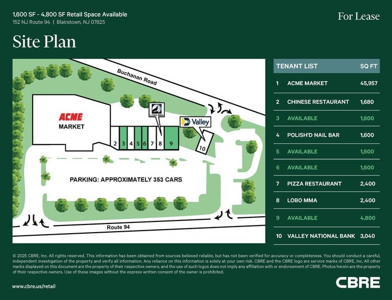 | Total Space Available | 9,600 SF | Gross Leasable Area | 57,961 SF |