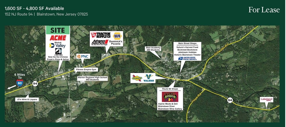 Supermarket Anchored Center 152 State Route 94 1,600 - 9,600 SF of Retail Space Available in Blairstown, NJ 07825