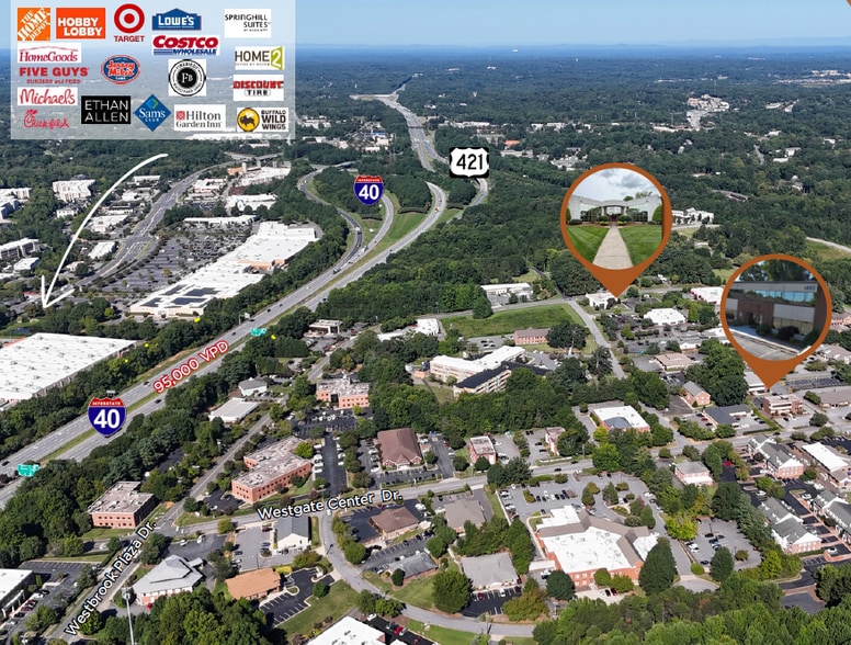 Prime location off I-40 & Stratford Rd in Winston-Salem’s largest retail market Surrounded by hotels, restaurants, banks and retail centers and minutes from downtown Winston-Salem, high traffic Hanes Mall corridor, Atrium Health/Wake Forest Baptist and Novant Health Key tenants include professional services, healthcare providers, government agencies, and corporate offices - 1495 Rymco Dr: 730-855 +/- SF Available - 1321 Westbrook Plaza Dr: 320-2,000 +/- SF Available