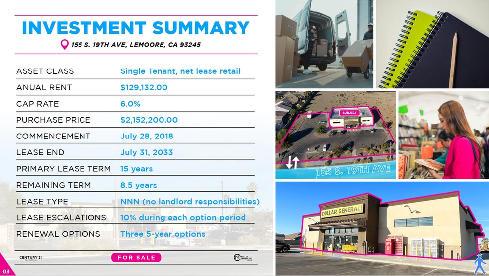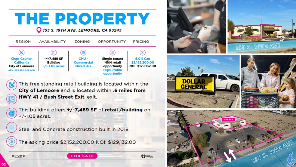 155 S 19th Ave 7,489 SF 100% Leased Retail Building Lemoore, CA 93245 $2,965,151 CAD ($395.93 CAD/SF) 6% Cap Rate