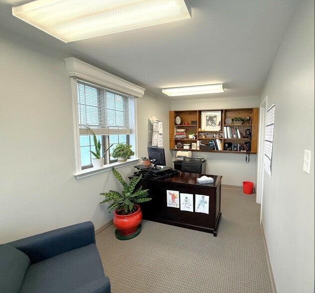 Own a move-in ready 1,450 SF dental office in the established Westtown Business Center. Purpose-built for dental use, this thoughtfully designed space offers everything you need to operate efficiently while providing a professional, welcoming environment for patients. The first floor features laminate flooring with a "hardwood look", vaulted ceilings, skylights that brighten the clinical area, and a modern reception/waiting room with a two-person/station desk and restroom. The clinical layout includes three operatories, complete with sterilization and cabinetry, a dedicated lab room, x-ray room, and gas storage closet — all optimized for an efficient workflow. The mezzanine level adds a private office with its own bathroom and a break room/kitchen for staff. A private entrance with ramp ensures accessibility, while the unfinished basement offers ample storage. Surrounded by other healthcare providers, this location offers excellent visibility, convenience, and accessibility to major routes and local neighborhoods. With its proven design and efficient use of space, this property is an ideal opportunity for dentists/medical professionals seeking ownership in the heart of West Chester.