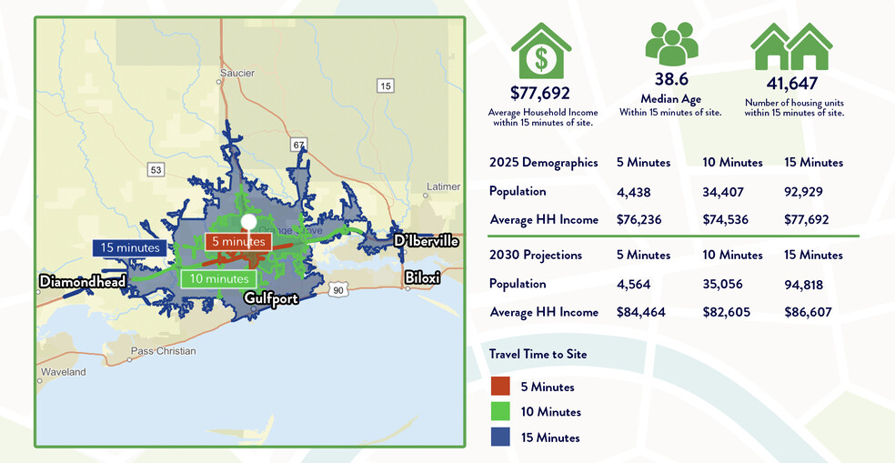 Prime Location: Fronting the main retail corridor and positioned directly across from the Gulfport Sam’s Club. Daily traffic counts are exceptional, with Sam’s Club acting as a powerful traffic generator that draws thousands of shoppers past the property every day.