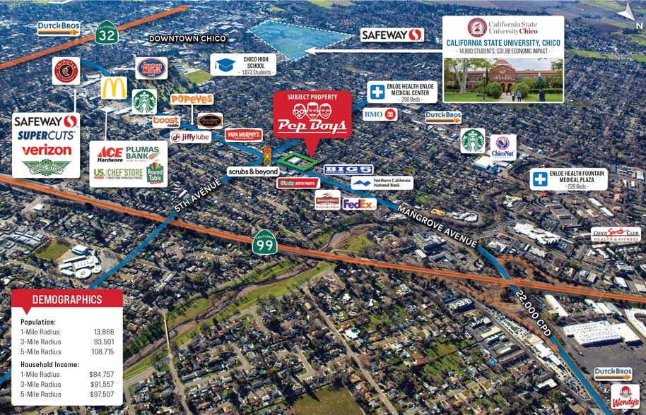 Pep Boys | Chico, CA 1555 Mangrove Ave 18,196 SF 100% Leased Retail Building Chico, CA 95926 $3,920,682 CAD ($215.47 CAD/SF) 6% Cap Rate