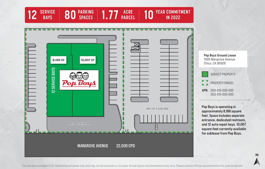 - Single-Tenant Pep Boys Ground Lease (12 Bays): 6 Years Remaining on the Current Term