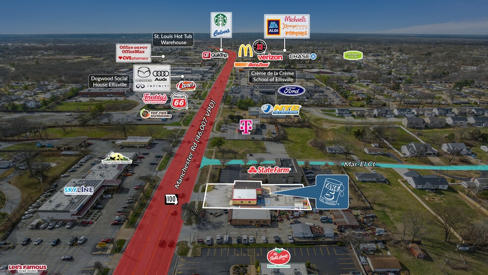 - 46,000+ VPD on West County’s Dominant Commercial Artery: Manchester Road (MO Route 100) is the primary east-west commercial corridor.