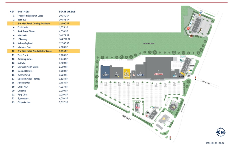 | Total Space Available | 13,515 SF | Frontage | 1,088’ on Sam Houston Pky |