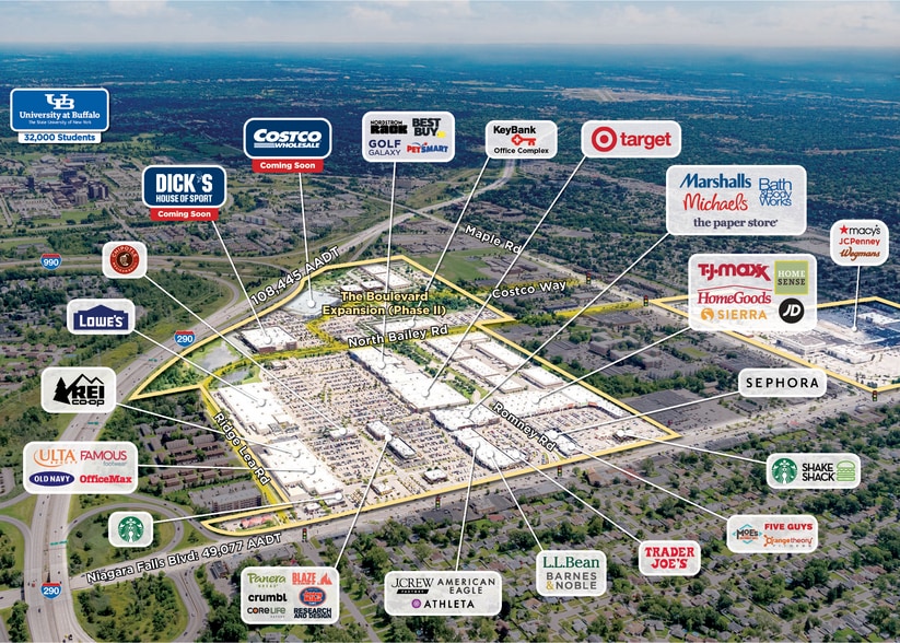 - Largest open-air power center in metro Buffalo, spanning 1,000,000 SF with planned future expansion