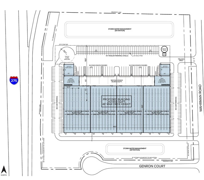 - 38 exterior docks and two drive-in doors support high-volume distribution.
