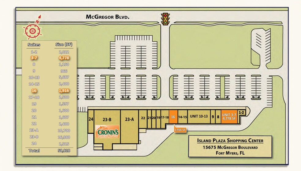 - Units 1-7 Available (4,778 SF) - Unit 16 (1,916 SF) • Located off of McGregor Boulevard with easy ingress/egress • Signage Opportunity