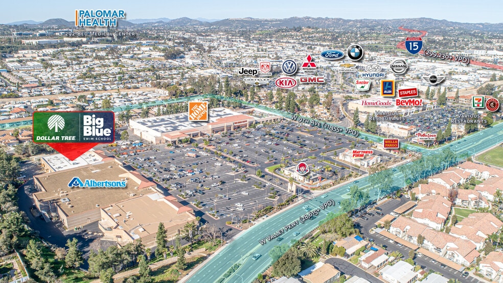 - Within a Home Depot and Albertsons Anchored Retail Center - along West Valley Parkway, One Of Escondido’s Primary Retail Corridors.
