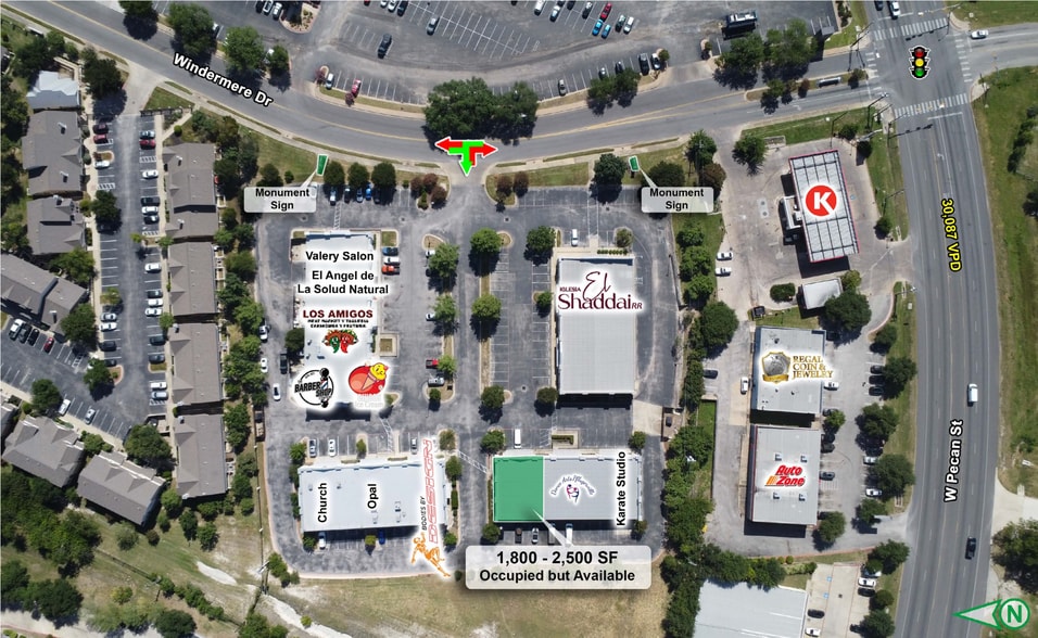 - Located at the Intersection of Windermere Drive (4,800+ VPD) and West Pecan Street (30,000+ VPD)